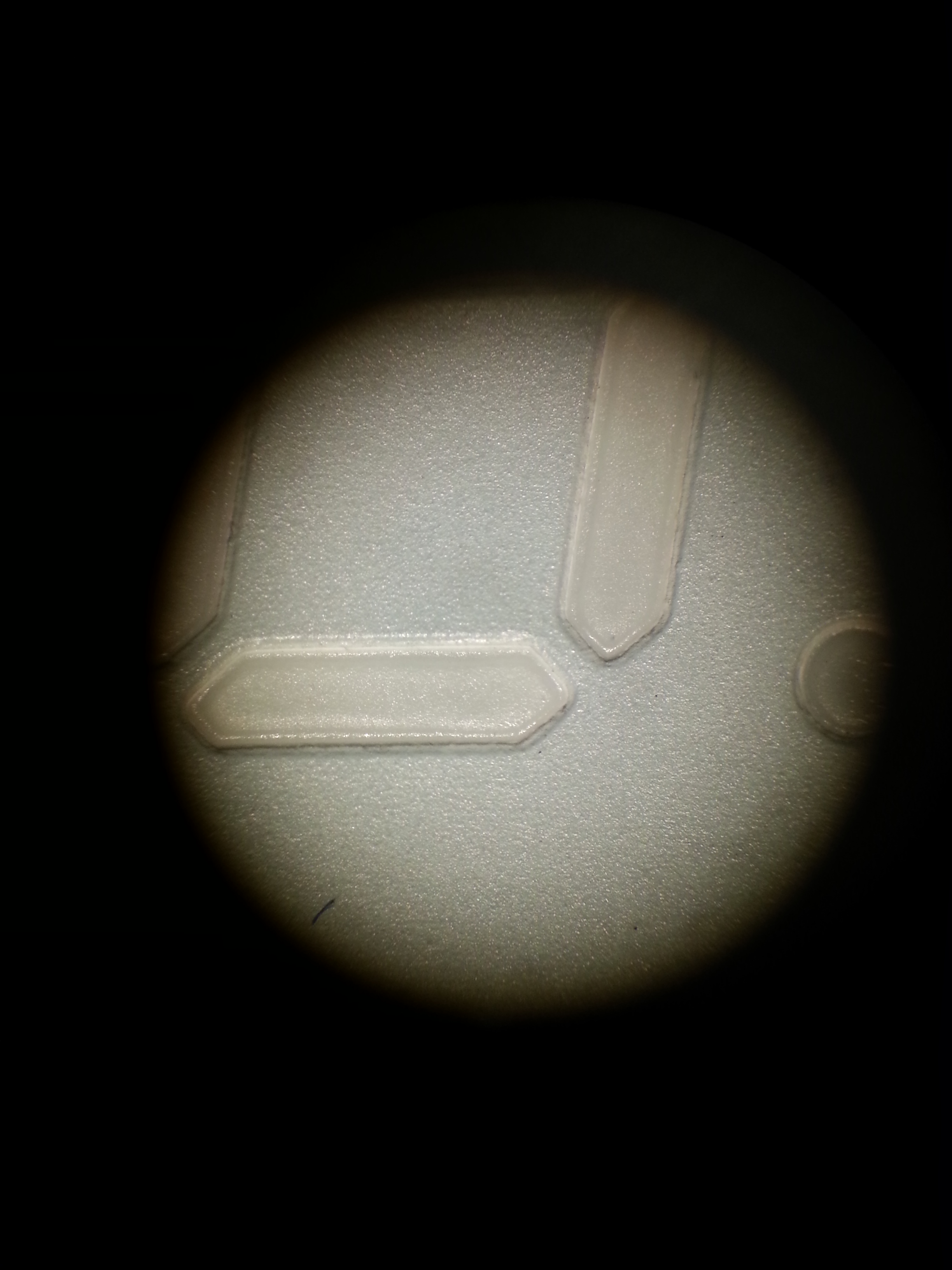 Here is a shot at 30x. You can see the grain of the plastic! It is also fantastic for soldering, and checking for shorts in across SMD components.