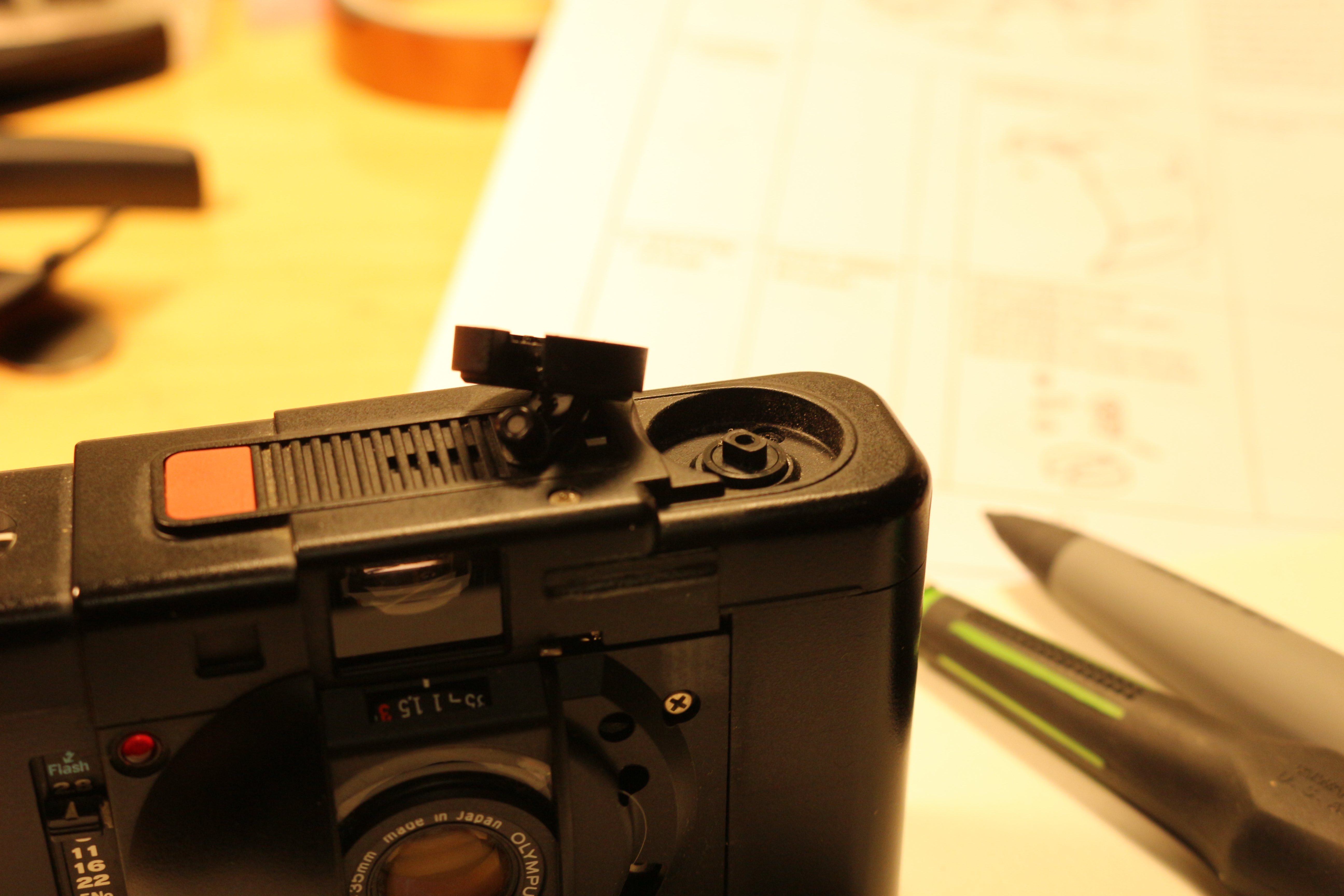 It’s odd seeing all those gears and wires. I always assumed that XA-era cameras just had a circuit board and a couple of chips, but it must have been one of the last analogue-mechanical compacts (the Stylus has a big PCB).