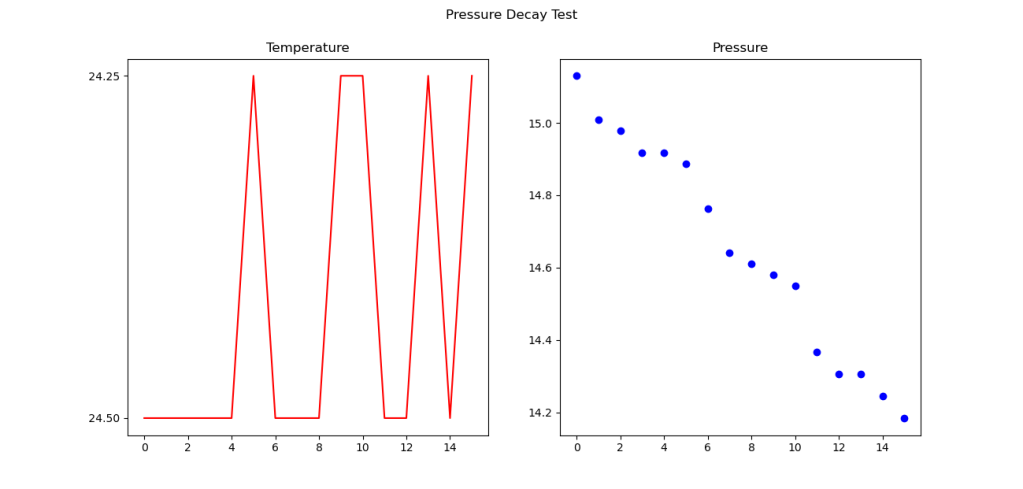 Gas, for the most part, should stay inside of a closed circuit rebreather- that’s sort of the entire point. So leak testing is very important- important enough to automate to get really good data. Unlike reading a gauge with your eyes, automated data capture, if done right, can make it easier to capture a lot of data, and it takes out errors caused by a person interpreting an analog gauge face. I also wanted to add temperature measurement, as that seemed likely to cause pressure deviation, even to the point that the pressure in the volume under test seemed to go up.