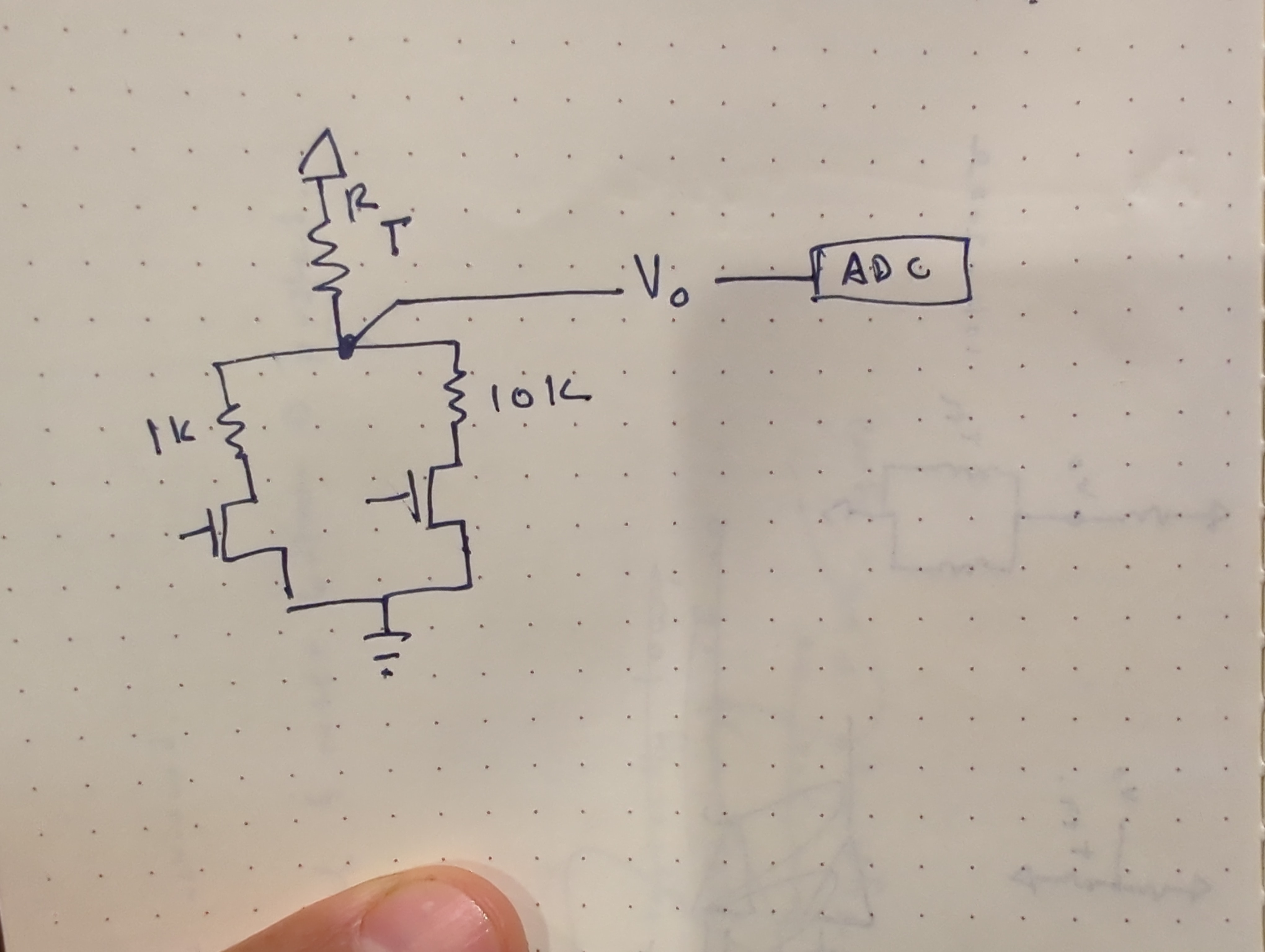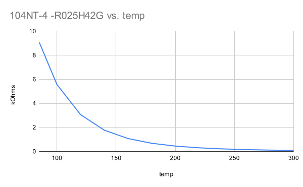 Measuring this range is difficult because the resistance of the thermistor changes a lot over the range I care about. at 25C, this particular model is 100k ohms, and at 200C it is about 1k ohms. It is very not linear, changing very rapidly at first. Thermistors are often used in a voltage divider, where the output voltage is related to the temperature of the thermistor: