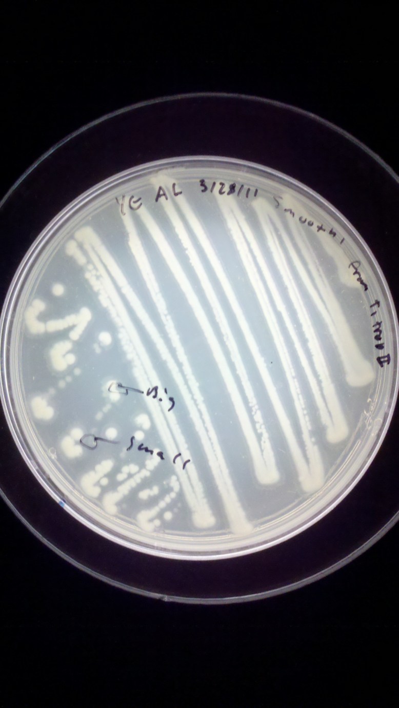 3. scrape off some e. coli (enough to see on the loop) with a flame sterilized loop, and swish the loop around in the iced CaCl2 in the eppendorf. Make sure they fall off into the CaCl2.