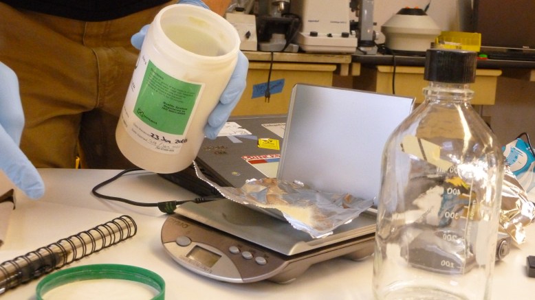 To start out, we had to sterilize some media and CaCl2 solution. We made 200 ml of LB agar, 80 ml of LB broth, and 500 ml of 50mM CaCl2 salt solution. The LB agar was used to make LB+ ampicillin plates. These were prepared by adding 2 ml of 1% ampicillin to the still-molten agar once it had cooled to “warm enough to hold”, and then pouring it into sterile petri dishes.