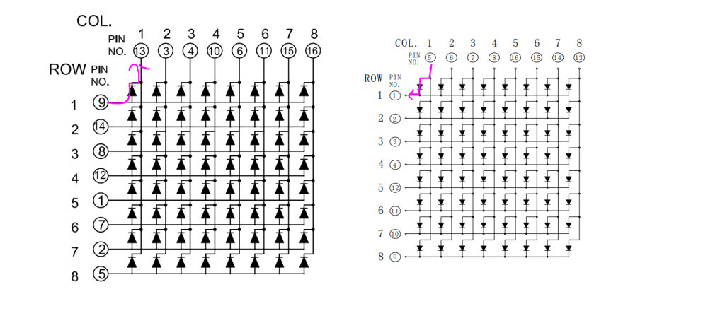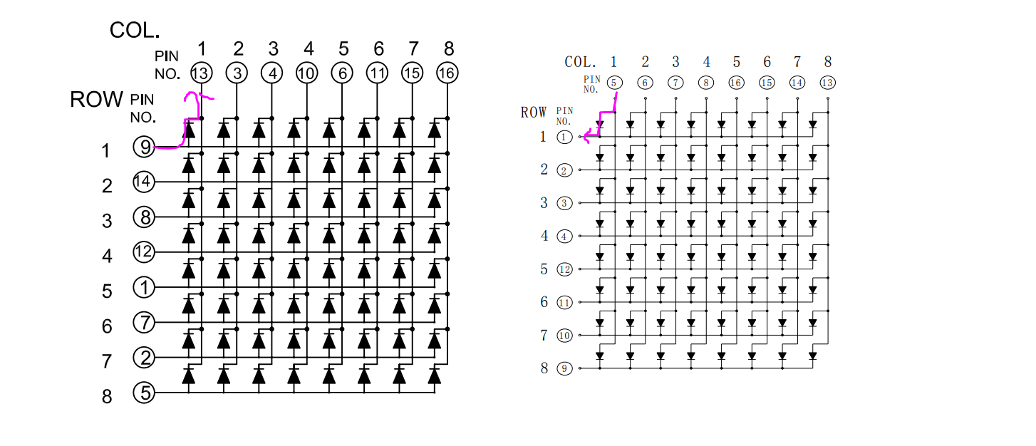 left- original gyxm-778 matrix. Right adafruits luckylight KWM-20882CVB matrix