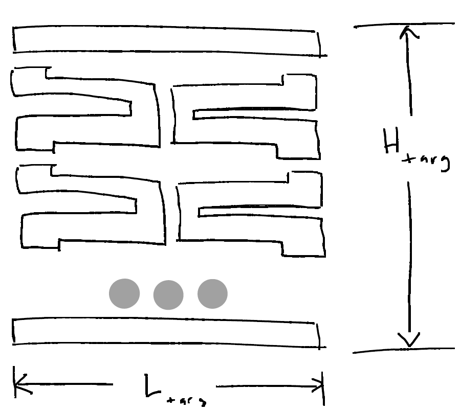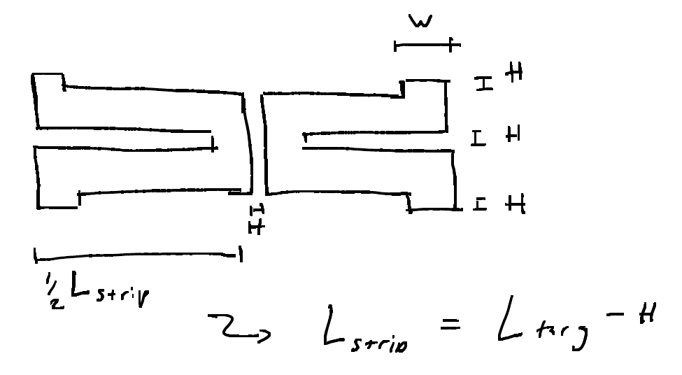 This drawing shows the units broken down- two long bars Ltarg long of width W, and several units that would each be connected to each other. Each unit has these dimensions: