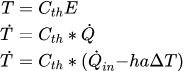 This basically says Temperature is equal to thermal mass * energy in an object. Taking the derivative with respect to time gives us a heating rate that depends on the heat into/out of the object. If we assume mostly convective cooling, and choose Qin, we can get a rate of temperature change. The delta T chosen tells us what the rate will be at a given temperature above ambient.