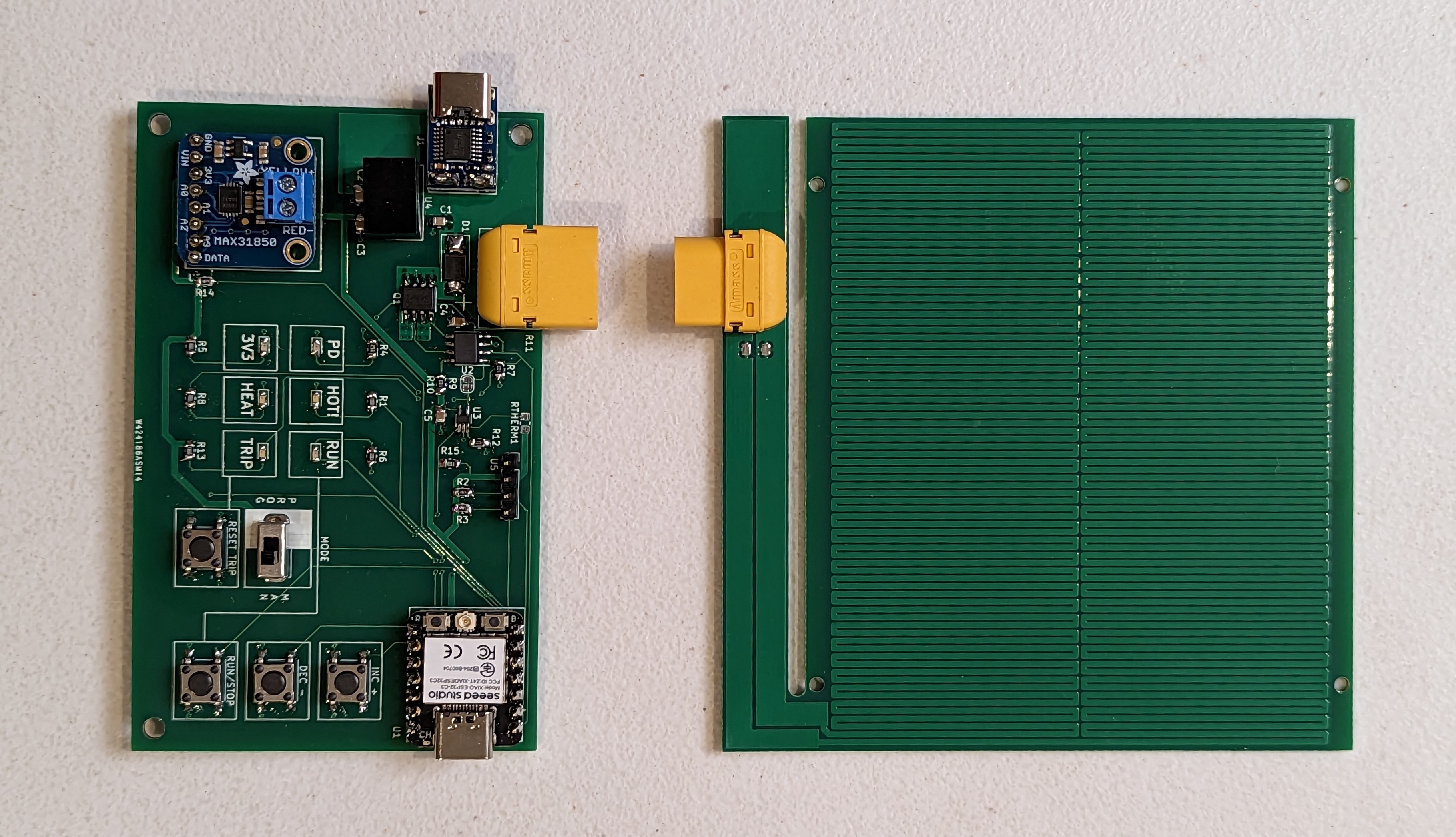 The PCB heater for the hotplate obviously needs to be driven by something. I could have put more circuits on the heater board itself, but separating them has some advantages: