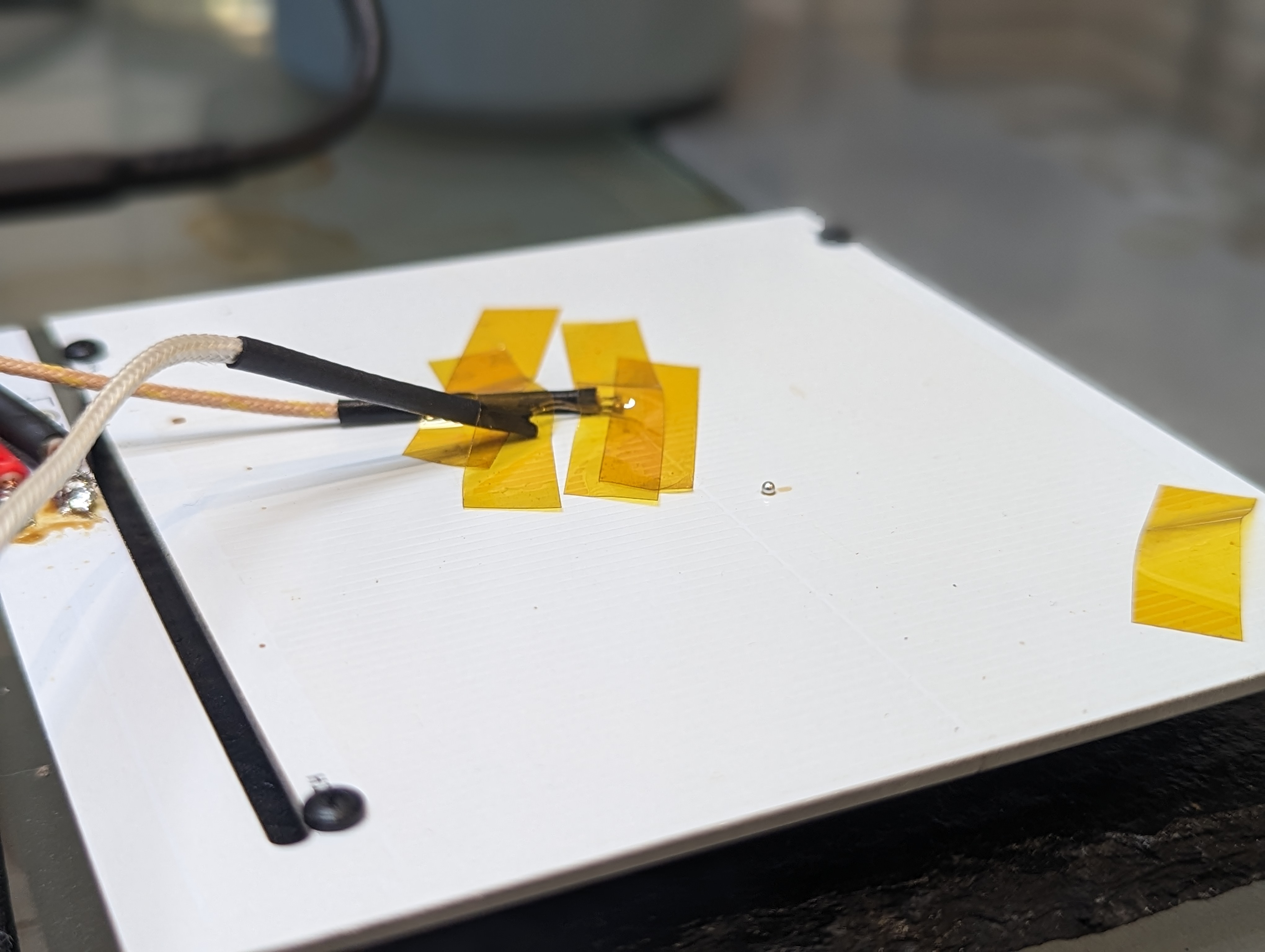 In terms of heater gradients, the aluminum PCB had about a 10C difference from the center to the corner at 200c. The gradient to the “neck” of the connector island was much worse (13+ C), since the thick traces there (and the substrate) act like a heat sink. The corners are cooler since there is some radiation and extra convection out of the sides of the heater.