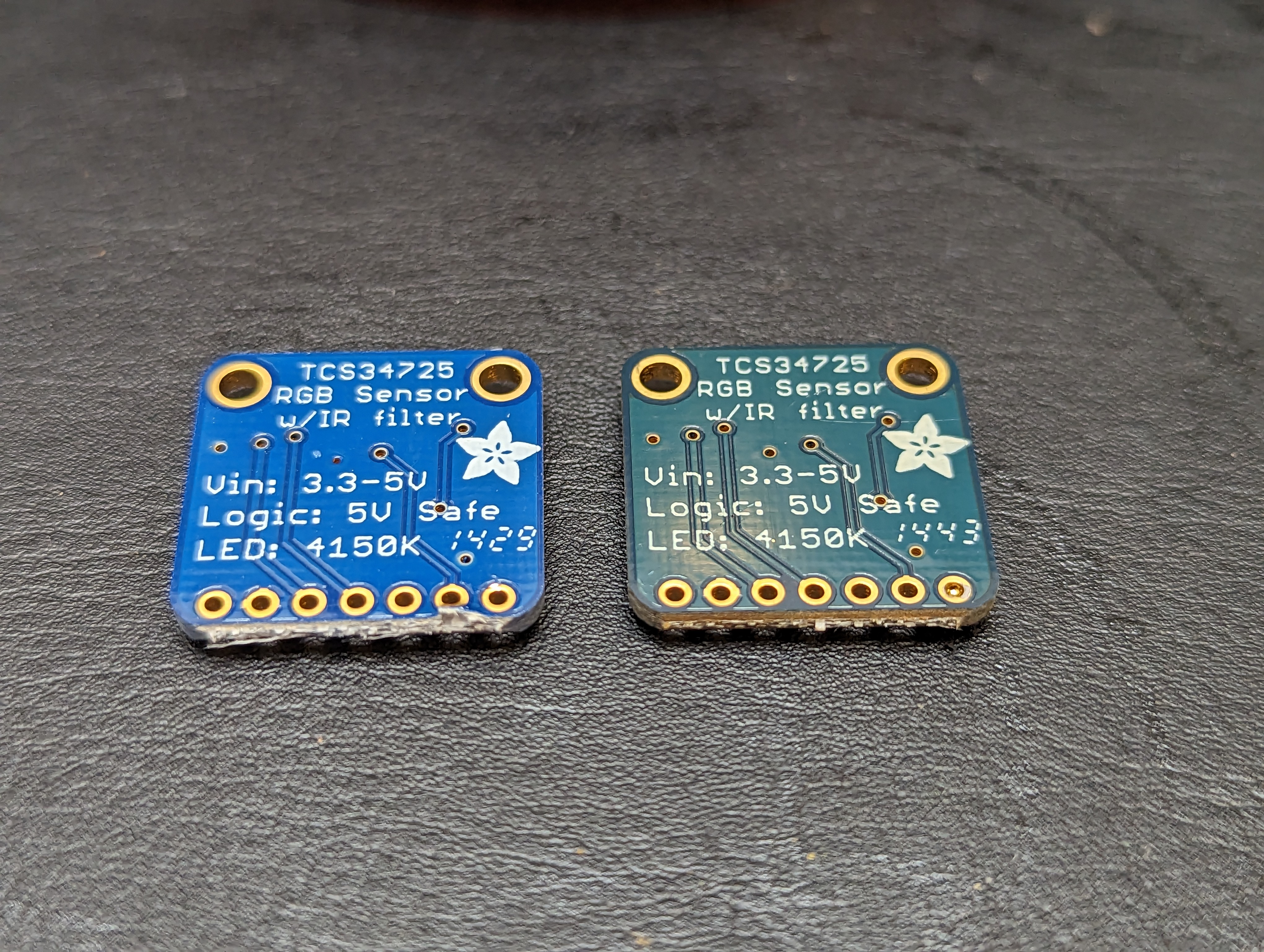 You can see the results of this heating on an adafruit board (above), that I gently reflowed. The left board is new from adafruit, and the right one is reflowed. It didn’t really damage the board, but it certainly would be an unacceptable outcome if a manufacturer overheated a board like this, and the lead free solder (I assume) on top barely reached the liquidus point, and would re-solidify as soon as I moved a component.