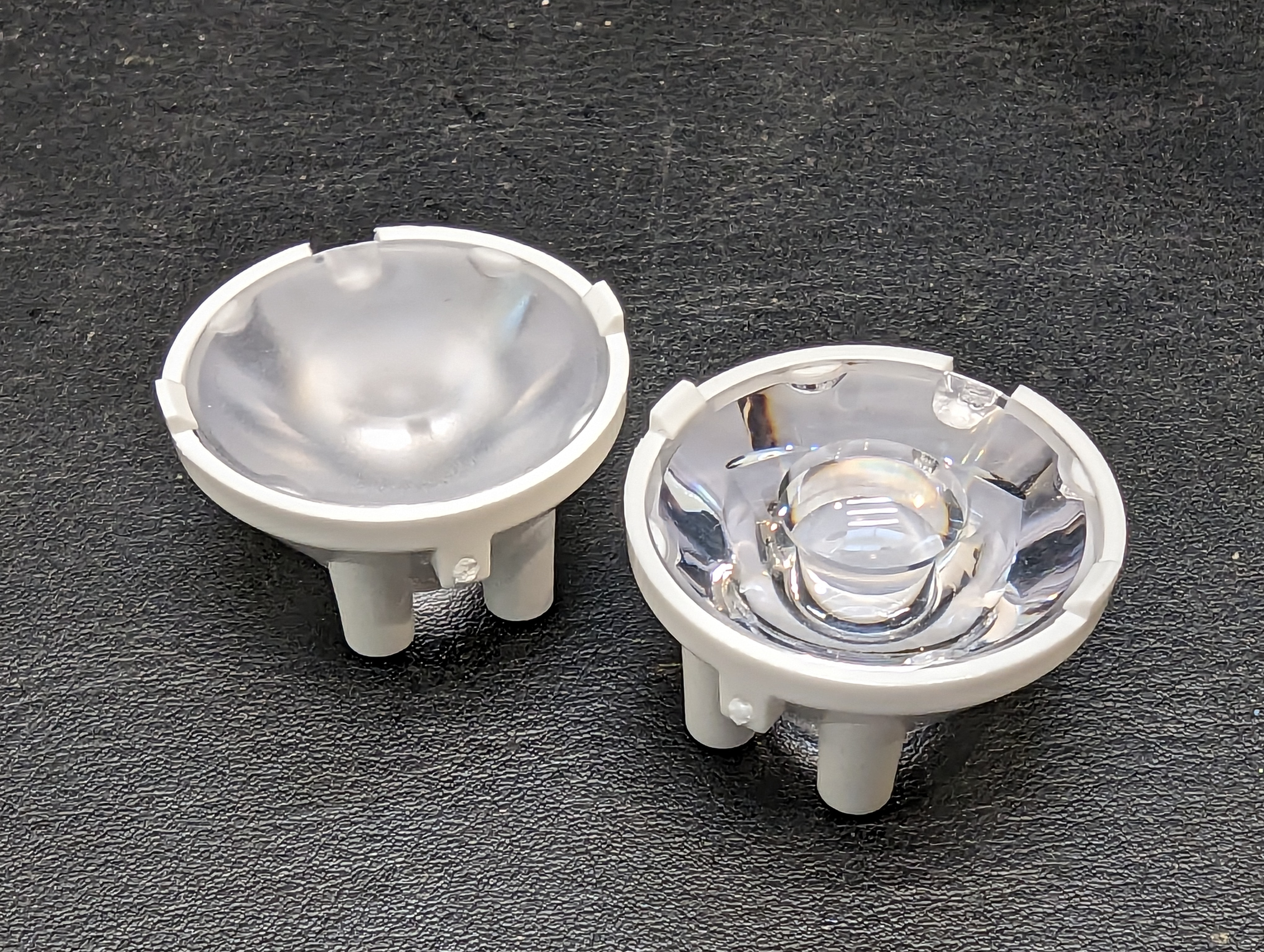 There are a lot of constraints on this project, starting with thermal and optical considerations. There are only so many off the shelf optics, and without much in the way of a mechanical prototyping department, I want to minimize iterations. The simplest way to do this was with single LEDs and off the shelf optics. Carclo has not only an impressive array of parts to buy, but they also have charts/images to go with the optics with different base LEDs.