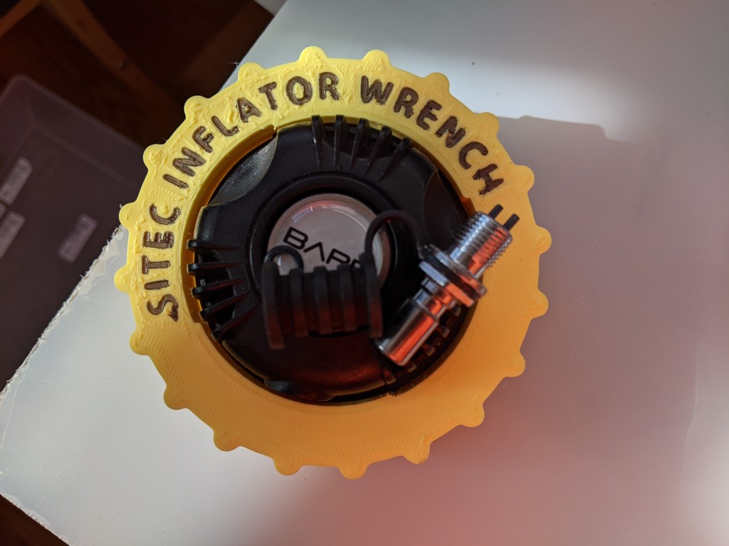 Step one was to get the valve out. Whoever tightened it down really did a “good job”. To avoid waiting to get the special wrench from sitec to even find out if my valve was leaking, I printed my own. You can get the files here. These wrenches fit down over very small lugs on the inside and outside of the inflator valve.