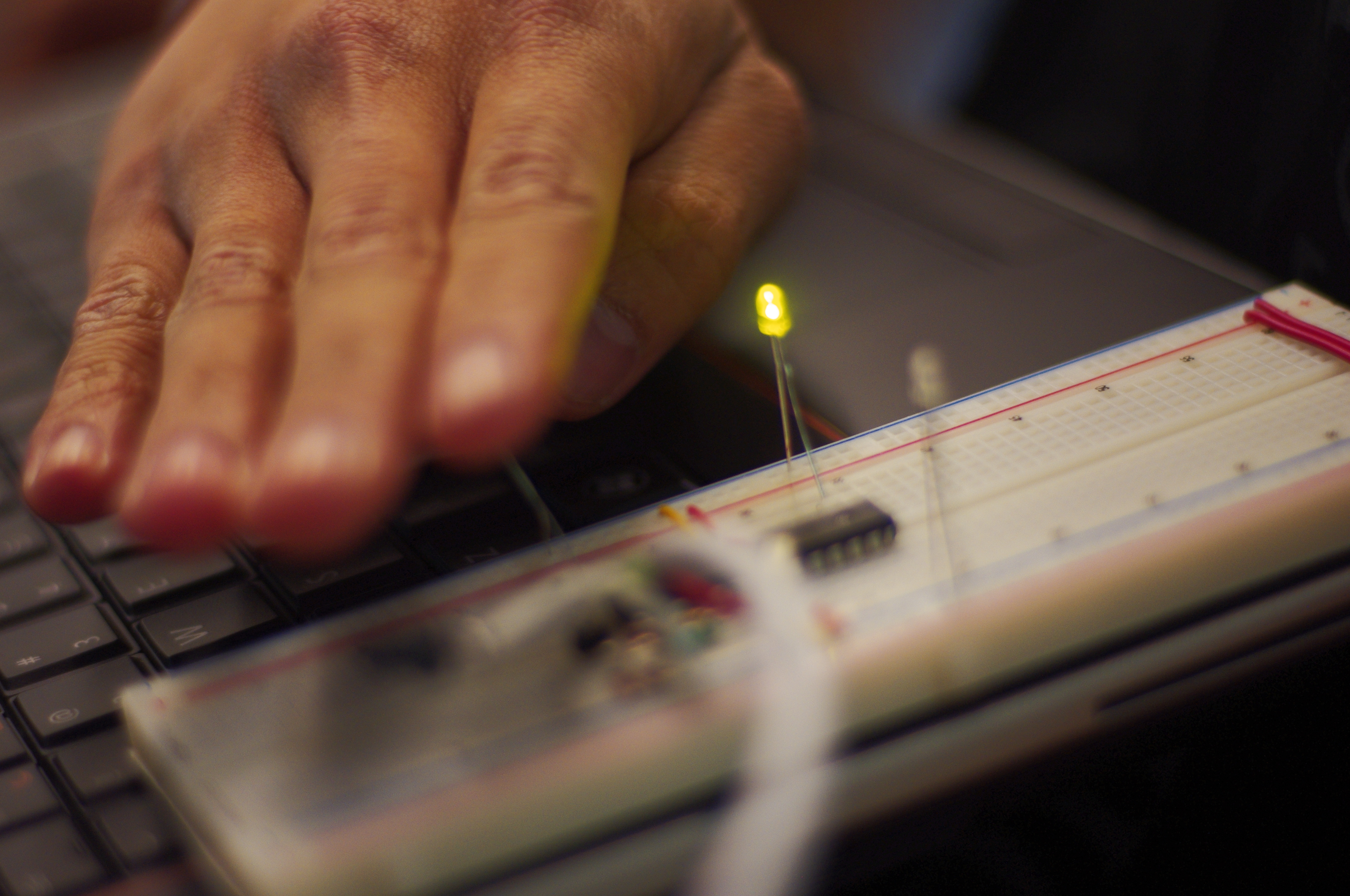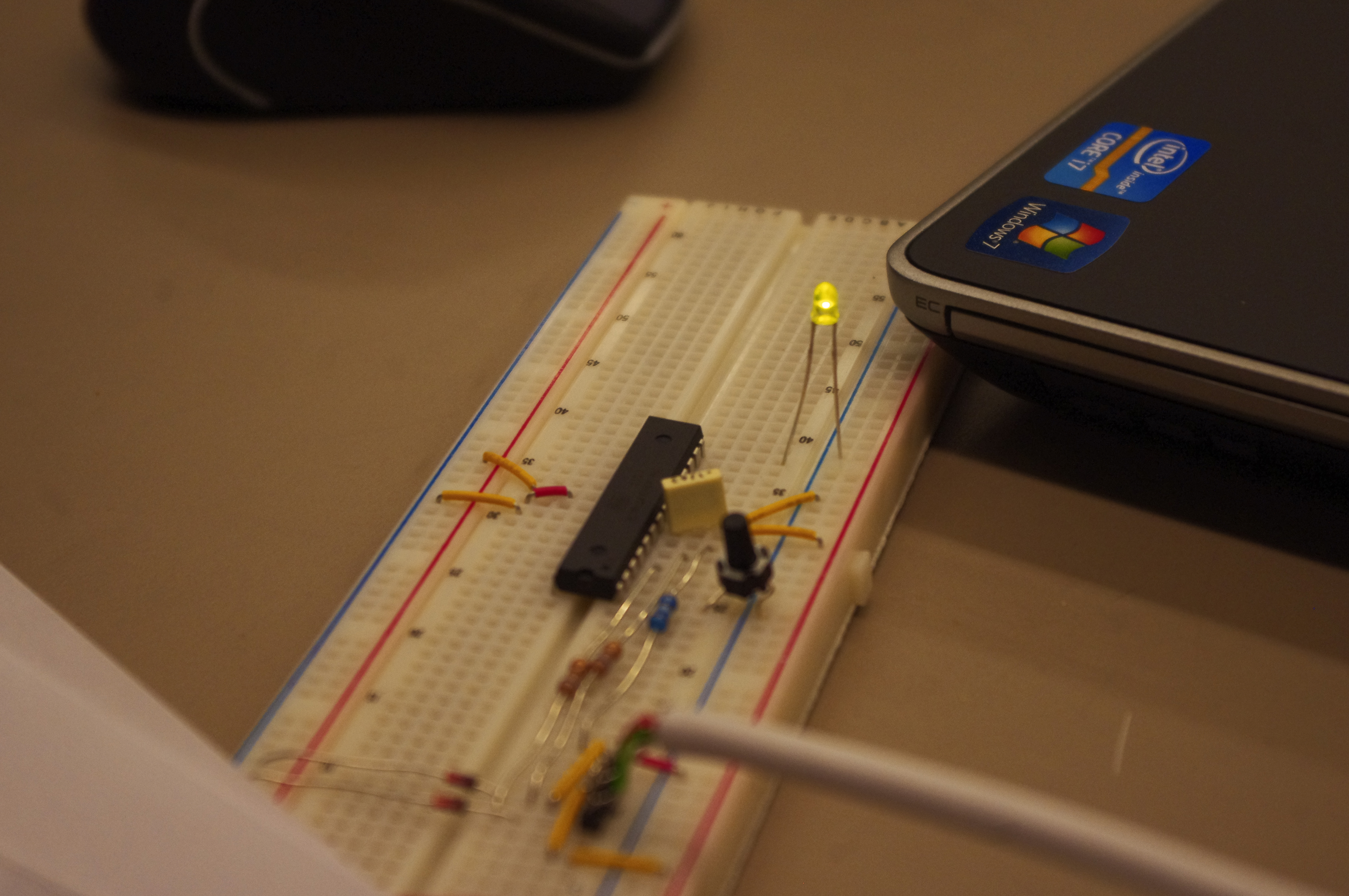 The answer to the second question is yes, but the cap was not big enough. The problem the circuit was having was that the batteries were trying to output a constant voltage. This means that as current demands changed in the circuit, the battery had to adjust the output current. With the microcontroller taking only a few miliamps, the circuit is not drawing much power. BAM! Motor turns on and what happens? The battery needs to supply more current, but can’t. Then the mcu shuts down as it looses power, sending a short pulse to the motor. So bigger decoupling caps were needed to smooth out the power supply, which the caps do by charging up to 5V, and then discharging if the voltage drops due to sudden current demand.